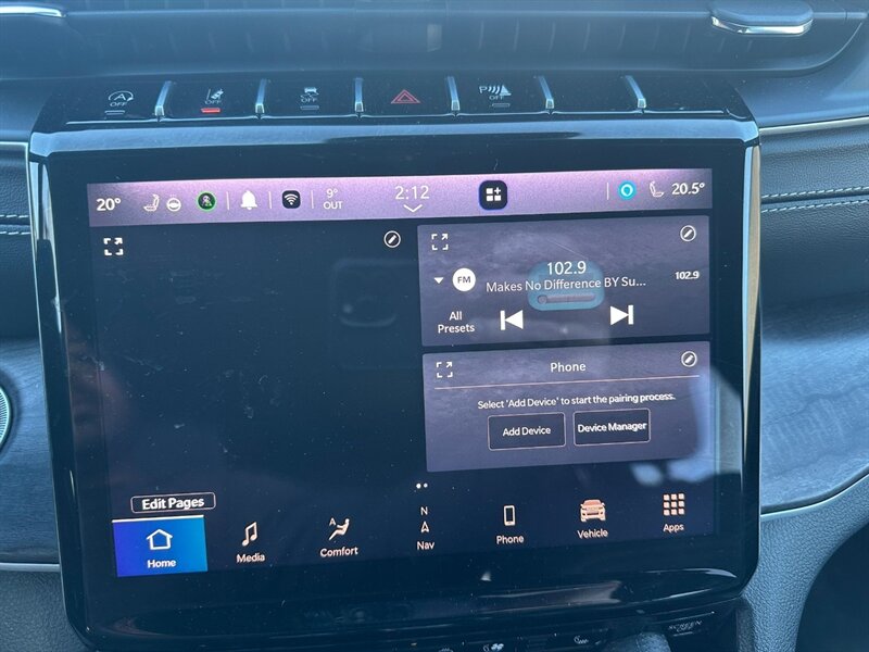 - Luxury Tech Group IIIncludes auto-dimming exterior driver mirror, auto-dimming rearview mirror with digital display, rear back up camera washer, surround-view camera system, integrated off-road camera, power tilt/telescope steering column with memory, passive entry front and rear doors and liftgate, rain-sensitive windshield wipers, second-row manual window shades, wireless charging pad, Capri leatherette seats with axis II seats, ventilated front seats, ParkSense front and rear park-assist system with stop, and intersection collision assist system.